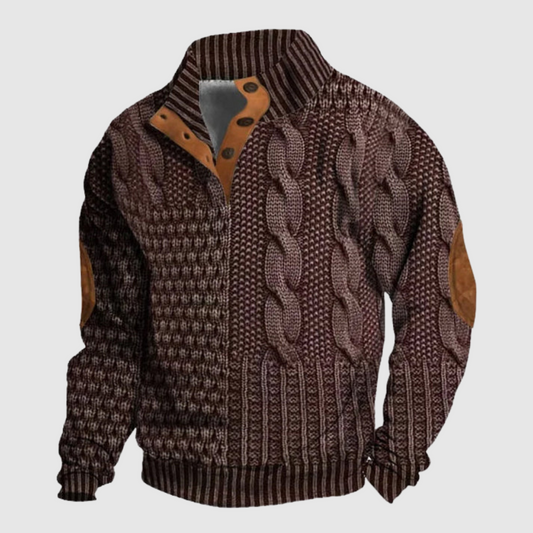 Velvet™ | Relaxed Retro Knoop-Door Sweater met Staande Kraag